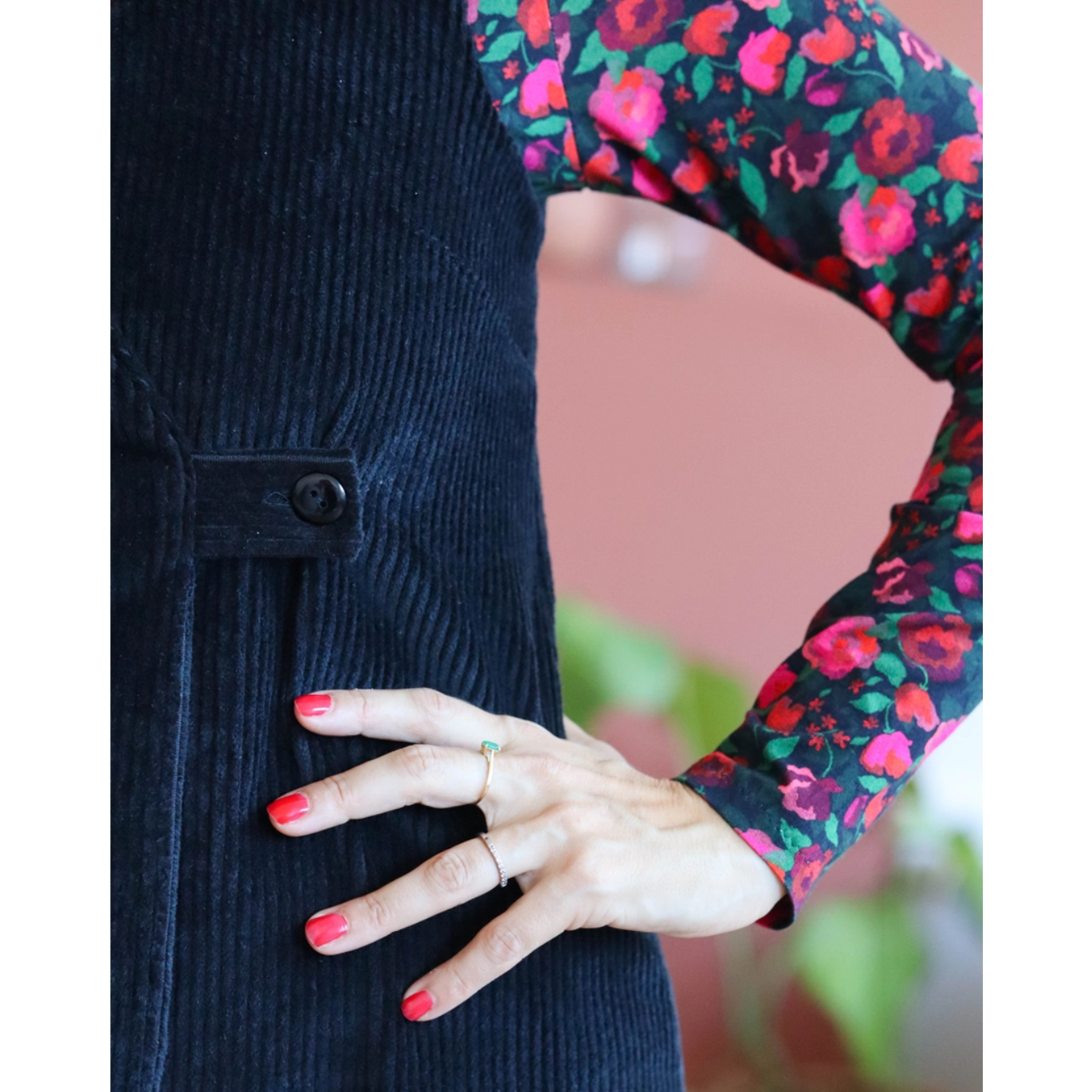 - Entretien : laver sur l'envers, 30° en machine avec un essorage doux (400 tours/minutes). Pas de sèche-linge, repassage sur l'envers à basse température.