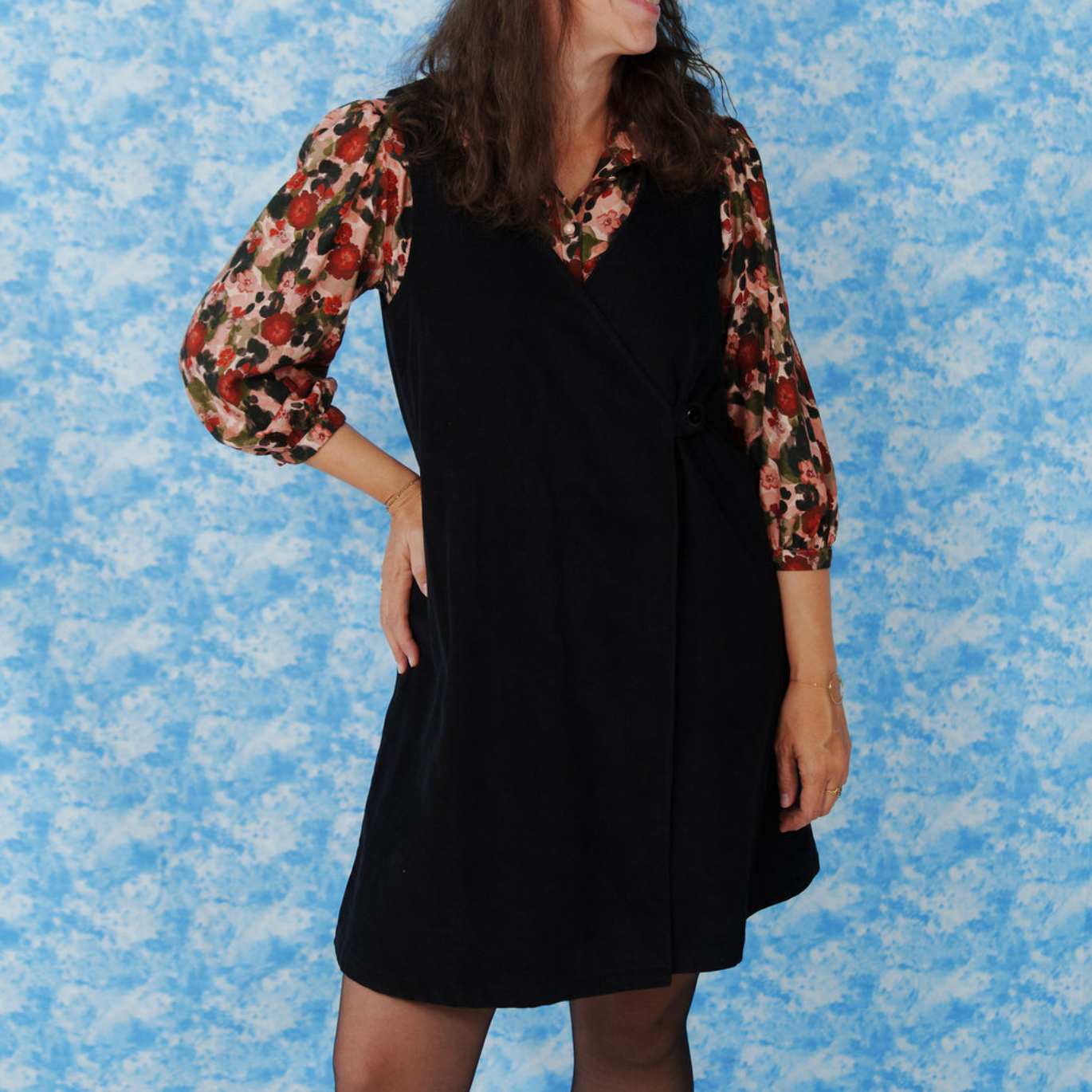 Notre robe chasuble cache-cœur Dorothea est une pièce facile à vivre et pleine de style.– Avec sa coupe trapèze et son encolure en V croisée, elle se porte en superposition pour varier les looks au fil des saisons.