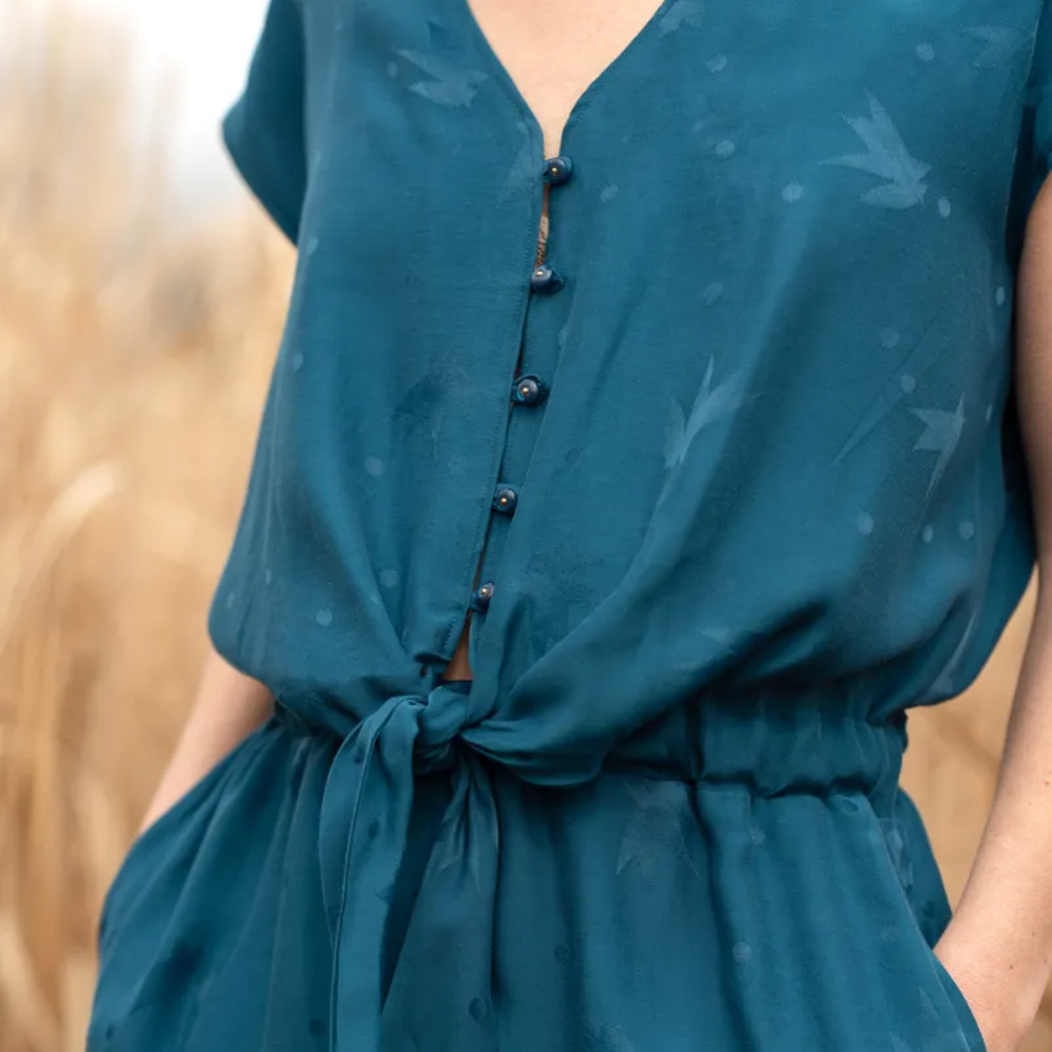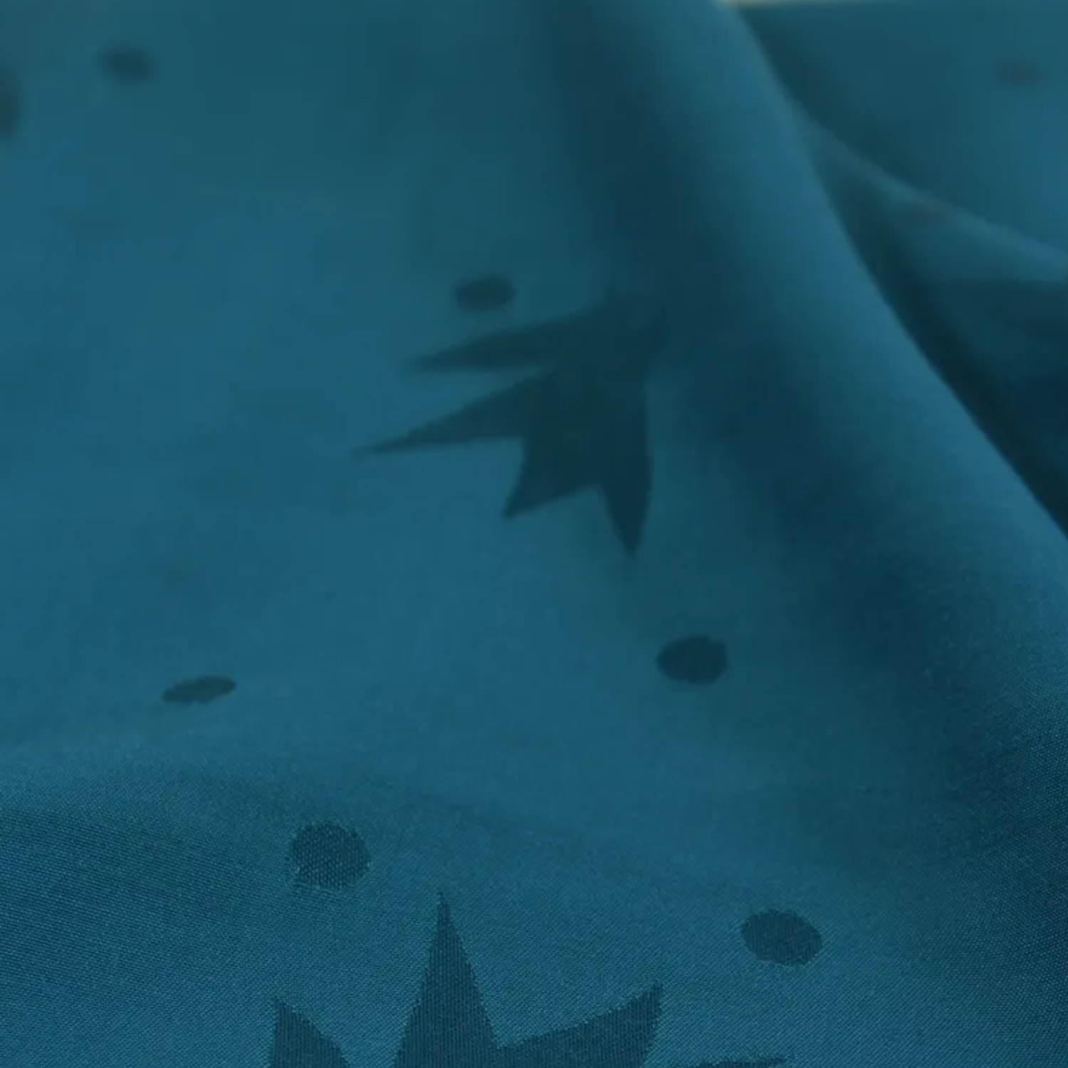 Notre délicat motif Streli est de retour sous forme d’un sublime jacquard fin. Les pois et les feuilles du motif ont été tissés dans notre teinte star Bleu Pétrole de façon à jouer avec les contrastes mats / satinés. Avec ce beau jacquard de viscose opaque et très doux, tout est permis : robes, vestes fluides type kimono, pantalons fluides, jupes dans le biais etc…