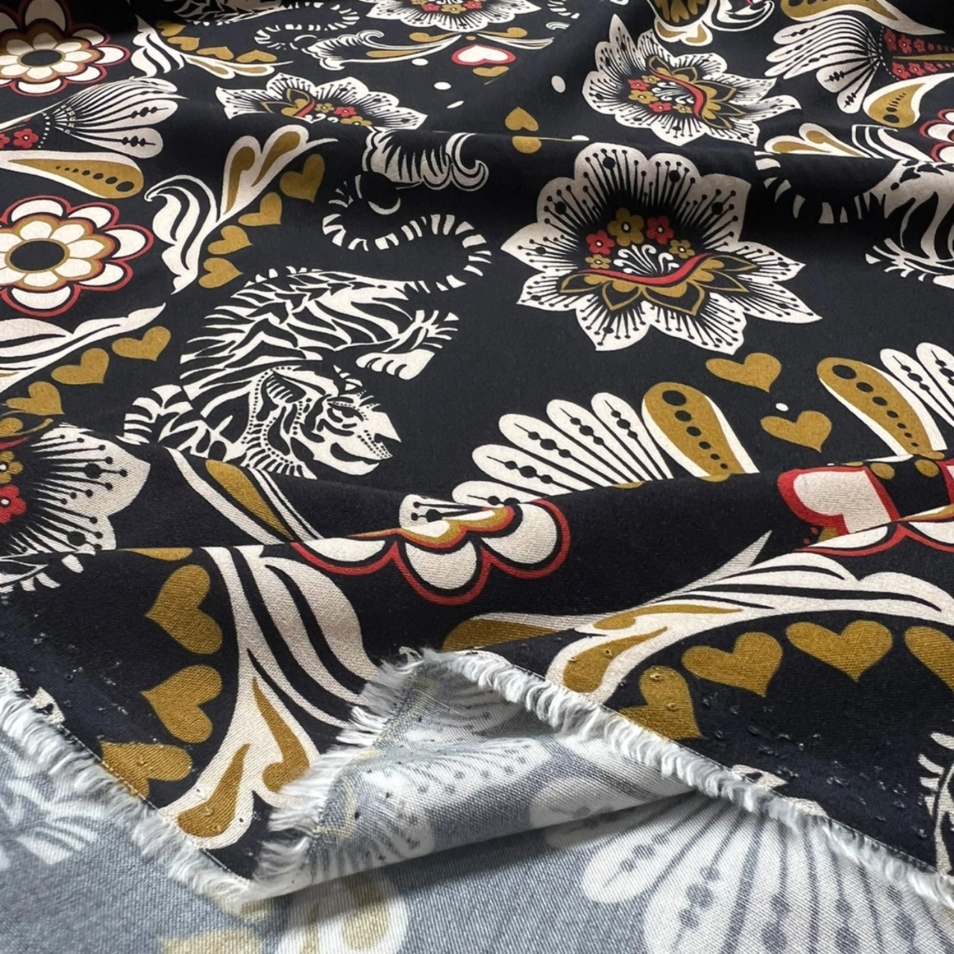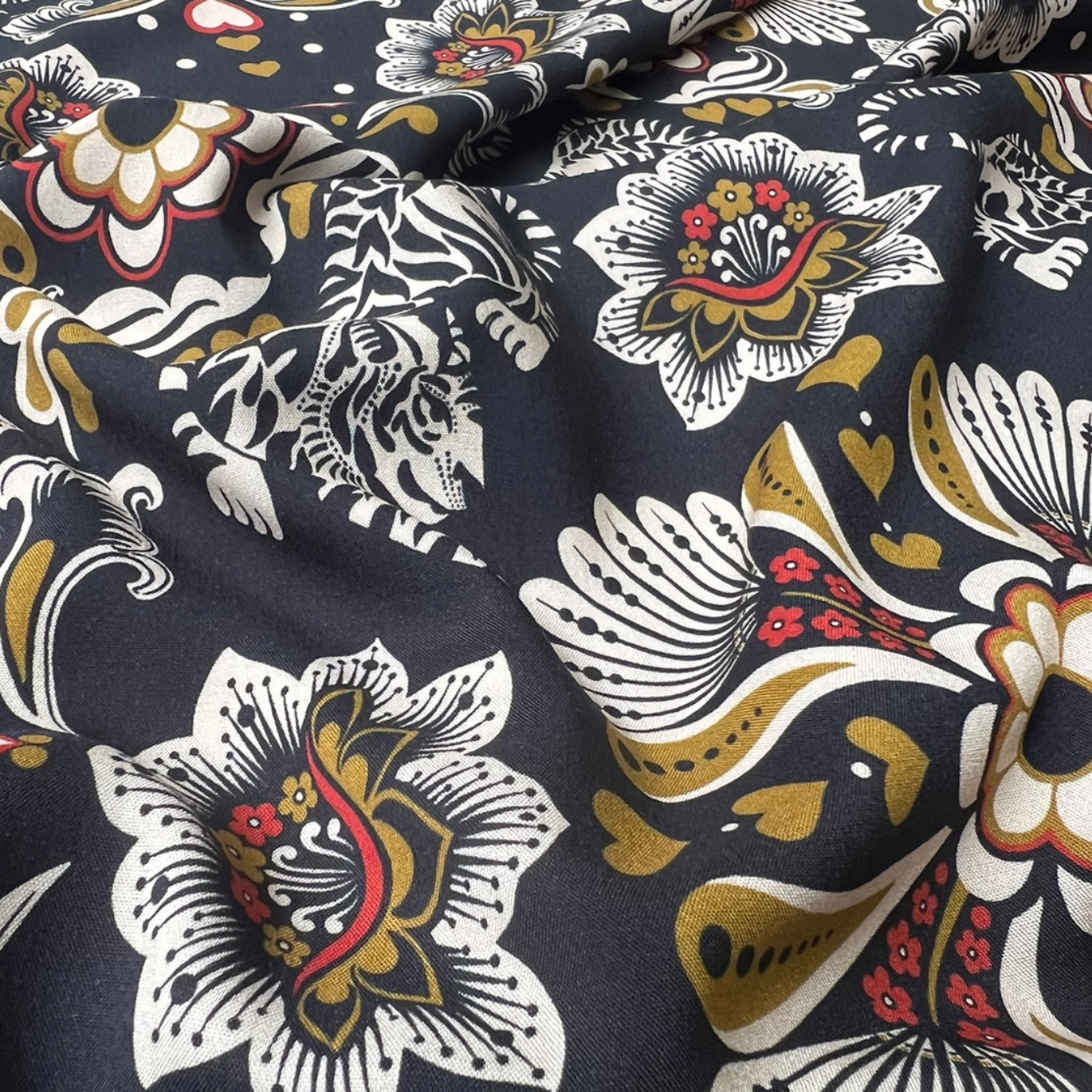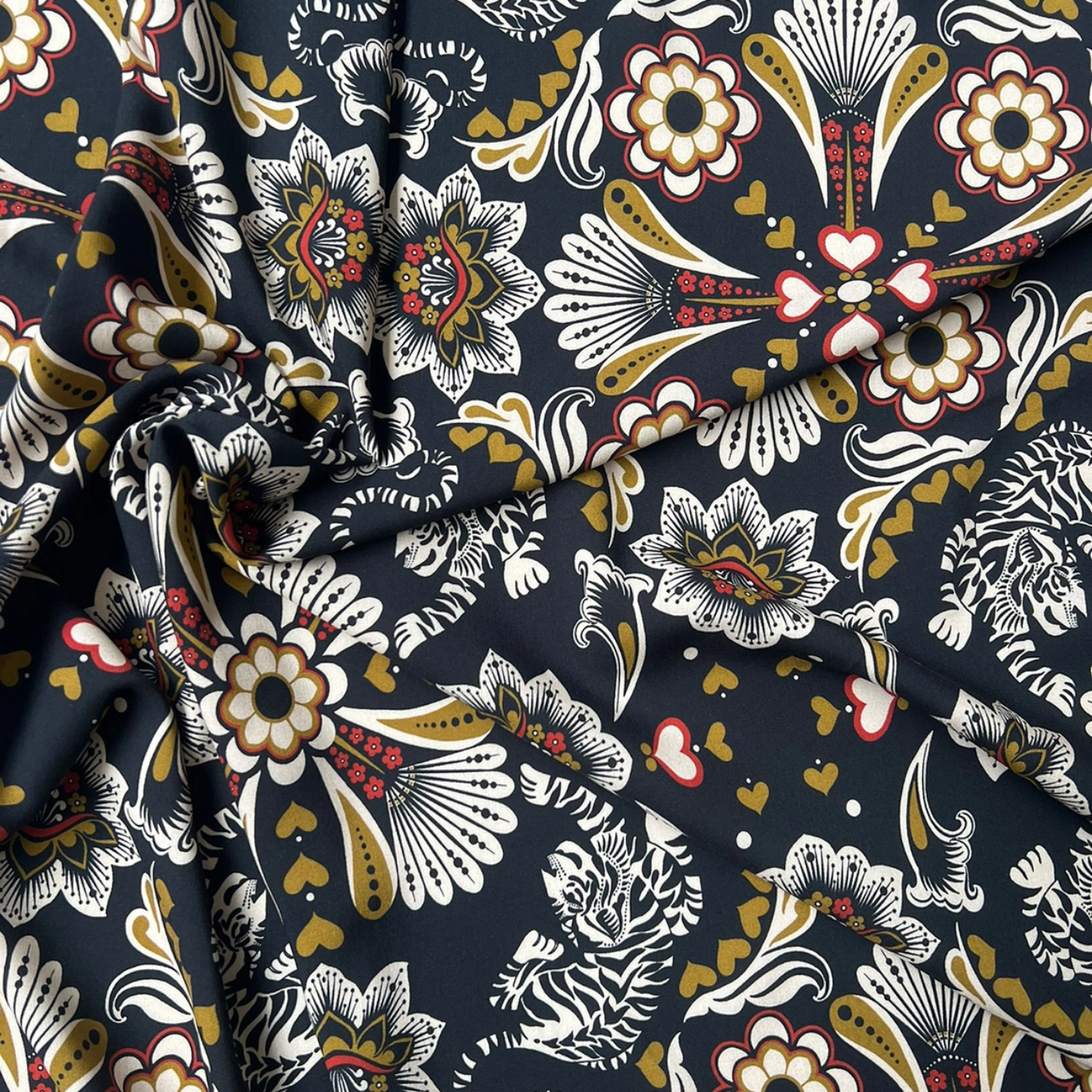 La viscose Tigre Sacré est imprimé d'un motif folk.